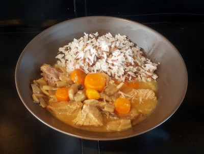 Accompagnez ce plat avec du riz, des tagliatelles, des pommes de terre ou éventuellement purée de pommes de terre carottes.