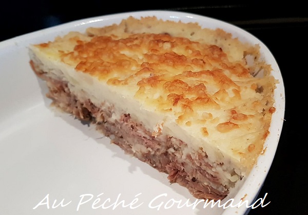 Dans un plat à gratin, étalez la moitié du hachis de canard. Mélangez la moitié qui reste avec le même volume de purée et étalez cette deuxième couche sur la première. Finissez par une troisième couche de purée.