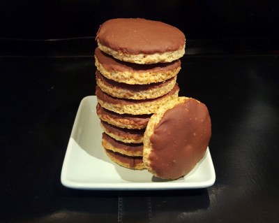 Laissez prendre à température ambiante (ce que je vous préconise car le frigo ramollit les biscuits et de ce fait ils perdent leur croustillant) ou disposez directement au frigo afin que le chocolat cristallise plus rapidement