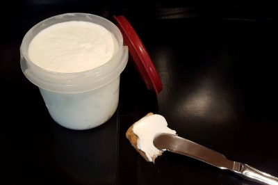 Il se peut que du petit lait ressorte au bout de 2 jours, ne pas hésiter à mettre 1 feuille de papier absorbant et retourner le pot , puis remettre au frais.