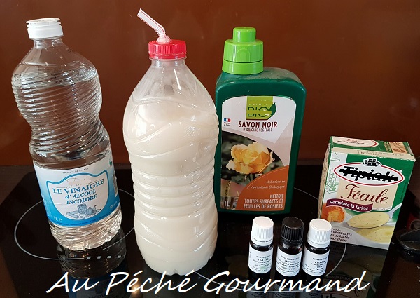- 3 cuil à soupe de savon noir (ou liquide vaisselle bio)