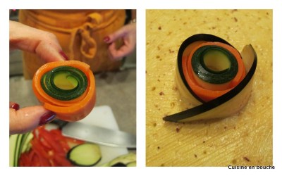 Commencer par créer le centre en enroulant, carotte et courgette.