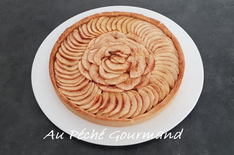 – Garnir le fond de compotée de pommes et garnir de pommes émincées en fines tranches en faisant bien chevaucher les pommes afin de ne pas avoir d’espace après cuisson.