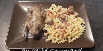 Pigeons aux lardons et aux champignons